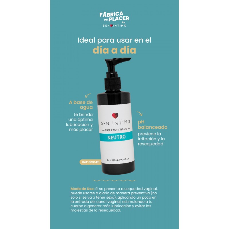 Descubre la suavidad y duración excepcionales con Lubricante Neutro de Sen Intimo. Este lubricante, con una fórmula a base de agua, proporciona una lubricación de calidad para elevarte a nuevas alturas de placer.