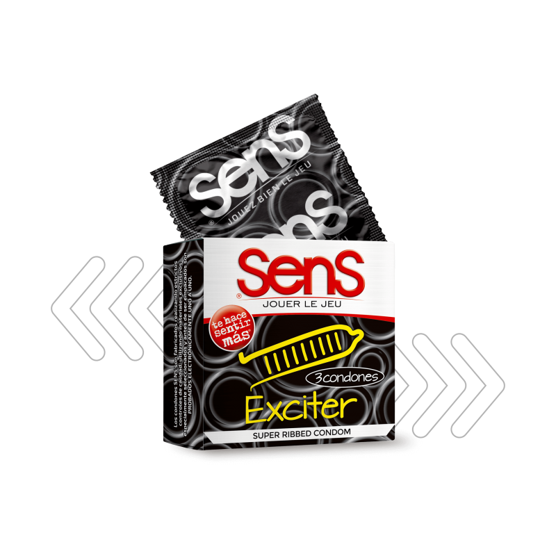 SENS EXCITER Super estrías, depósito de semen y lubricado. Los condones, utilizados adecuadamente, previenen el contagio de enfermedades de transmisión sexual como VIH/SIDA y embarazos no deseados.